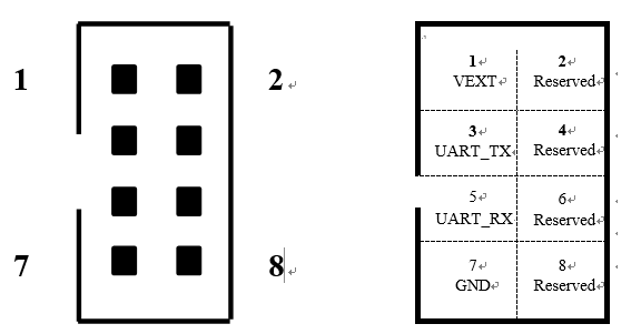 | 1 | VEXT | 电源输出,此处电源供电能力为 3.3V/1A。 |